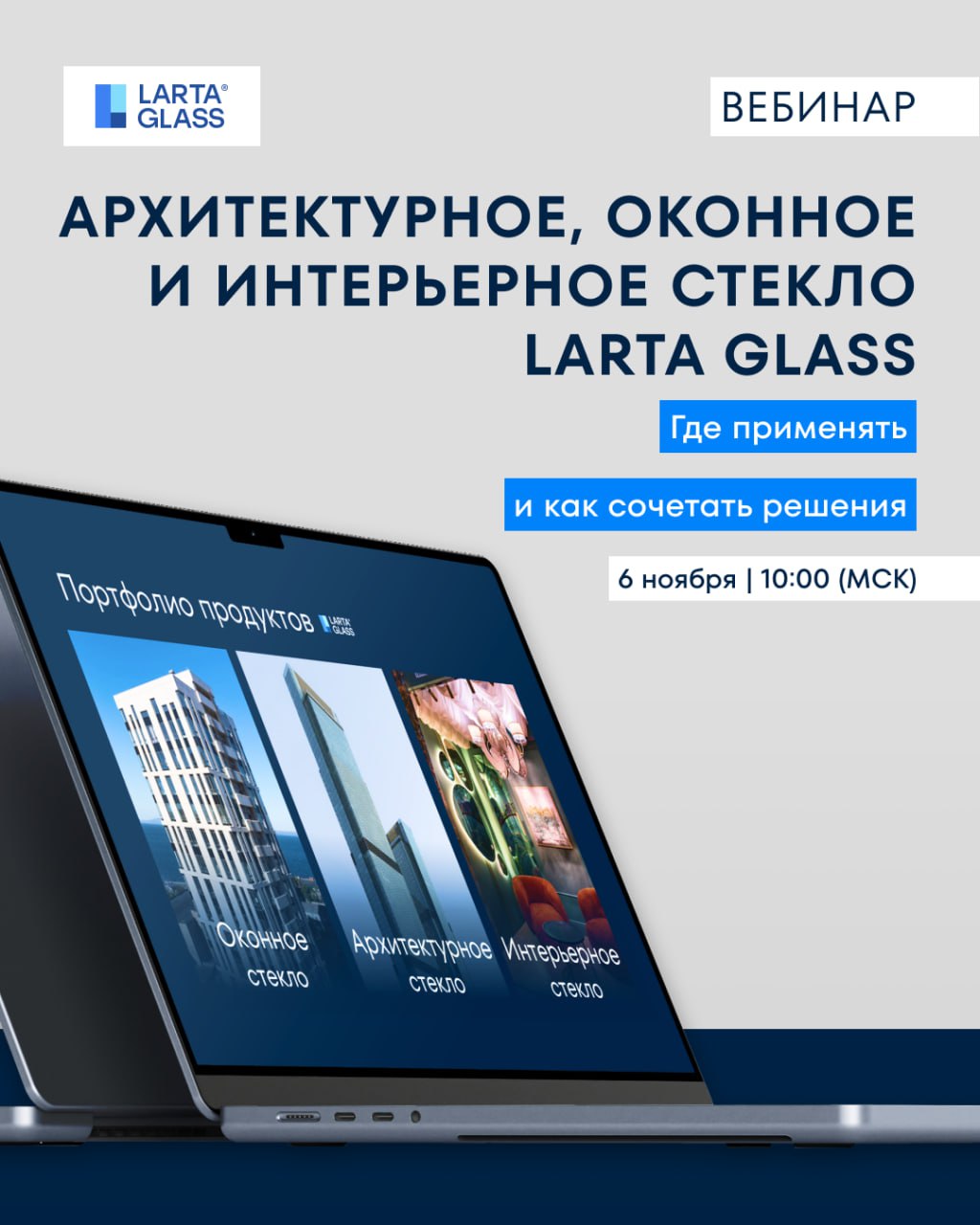 🔈 Вебинар «Портфолио продуктов LARTA GLASS» — 6 ноября! Разберем ключевые продукты LARTA GLASS и их примене...