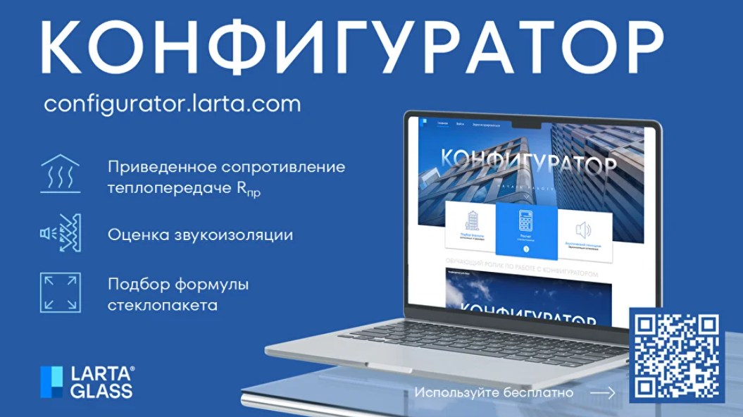 Конфигуратор Larta Glass позволяет профессионалам в области остекления с легкостью подбирать и рассчитывать характеристики стеклопакетов.